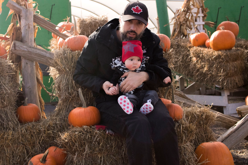 This wasn’t a long adventure, but it was fun. We got Ollie dressed in a cute dancing skeleton onesie, grey jeans, camo vest, red toque and red Chucks and strapped him in for the car ride. We were worried on the drive as he whimpered in the backseat, but we kept going.