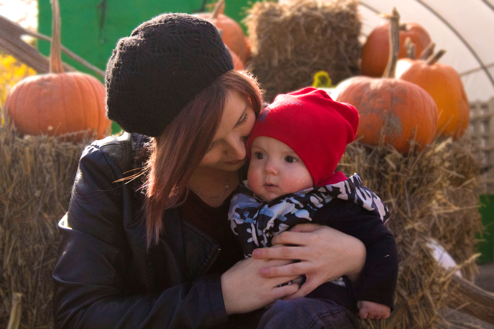 The little dude wasn’t in a super smiley mood, but he wasn’t complaining. We got photos of him sitting with pumpkins, with his mom, and with me.