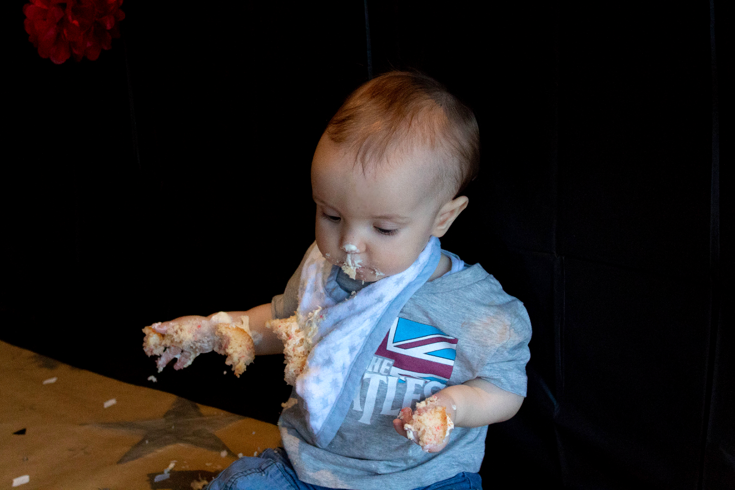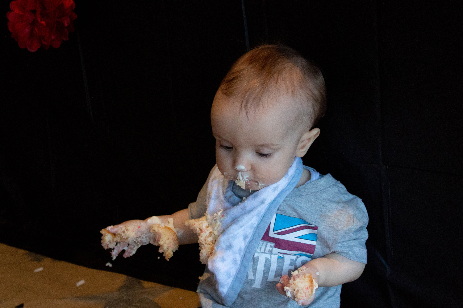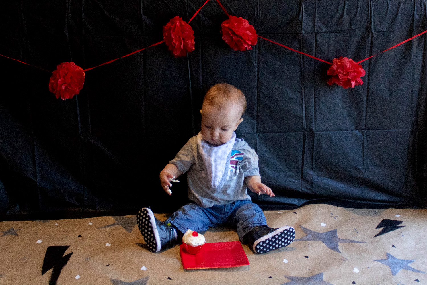 Yesterday, Oliver was surrounded by friends and family as he opened presents and shoved a cupcake into his little mouth.