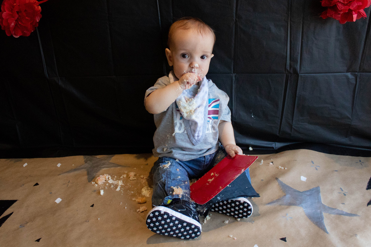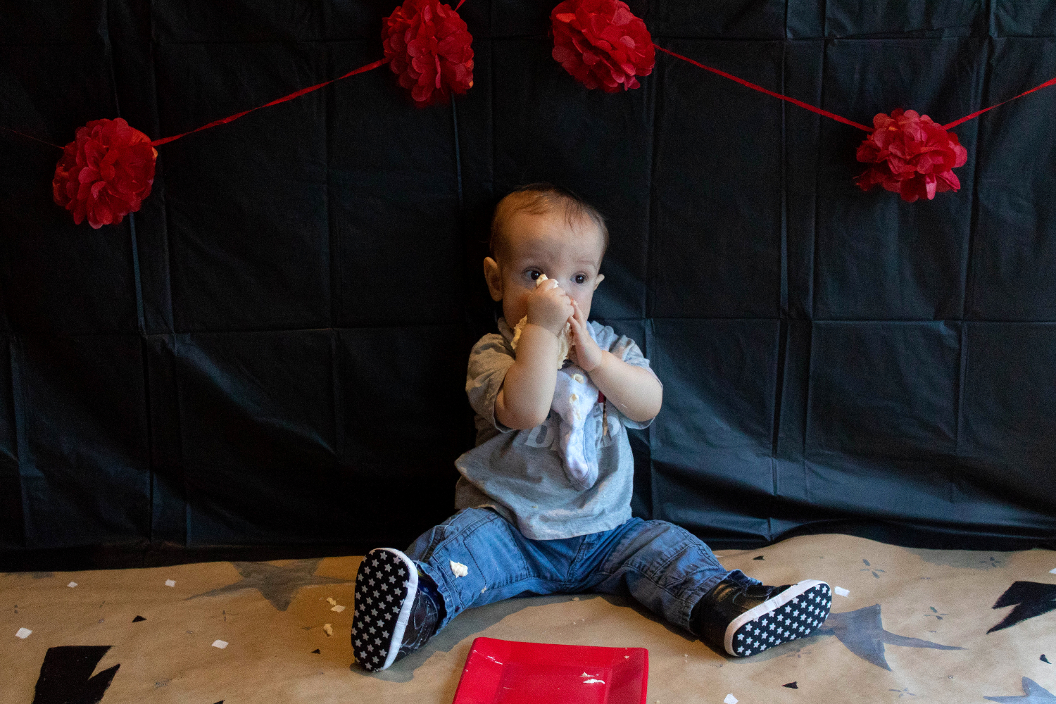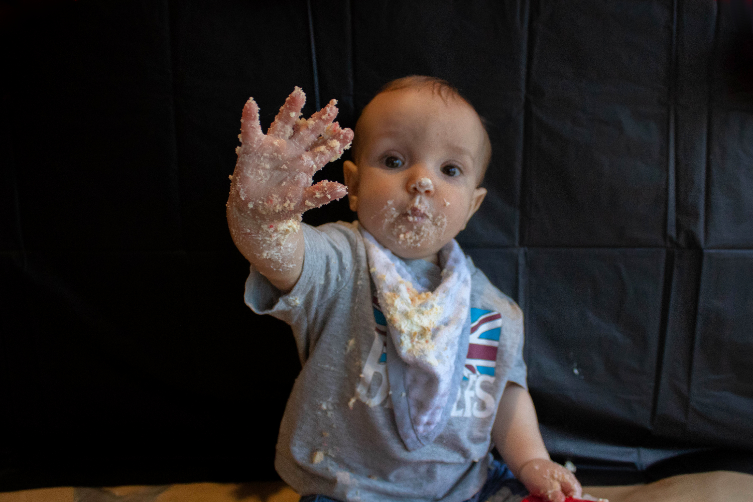 Yesterday, Oliver was surrounded by friends and family as he opened presents and shoved a cupcake into his little mouth.