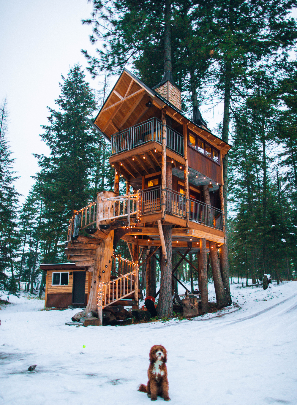 I don’t need fancy or elaborate or tons of lights or TV or anything like that. Don’t get me wrong, those kinds of treehouses are really, really, really cool. But they are more than I need. Take a look at the photos below. That treehouse has spiral stairs and a chimney and lights all over and two levels. It’s amazing. It’s more than I need.