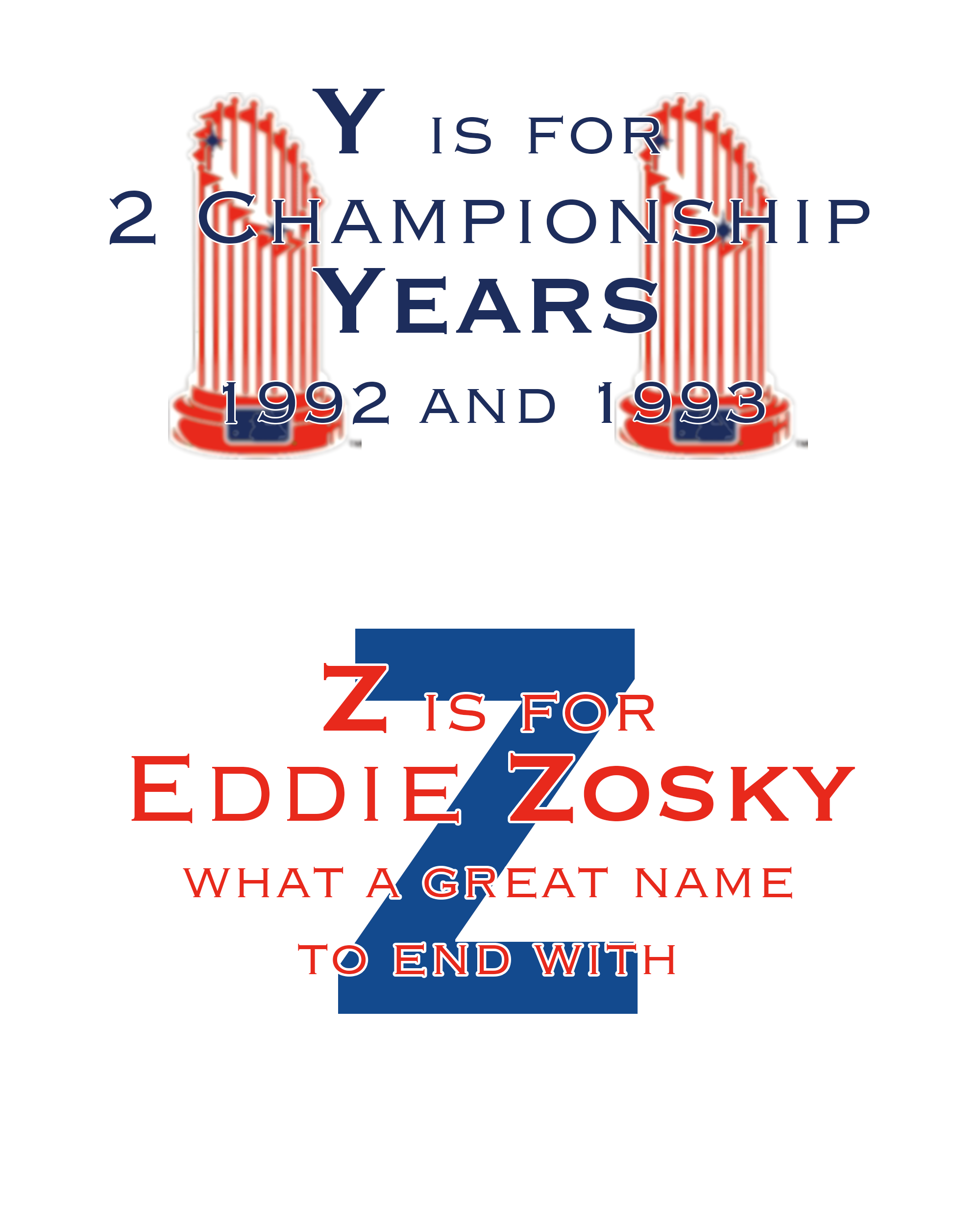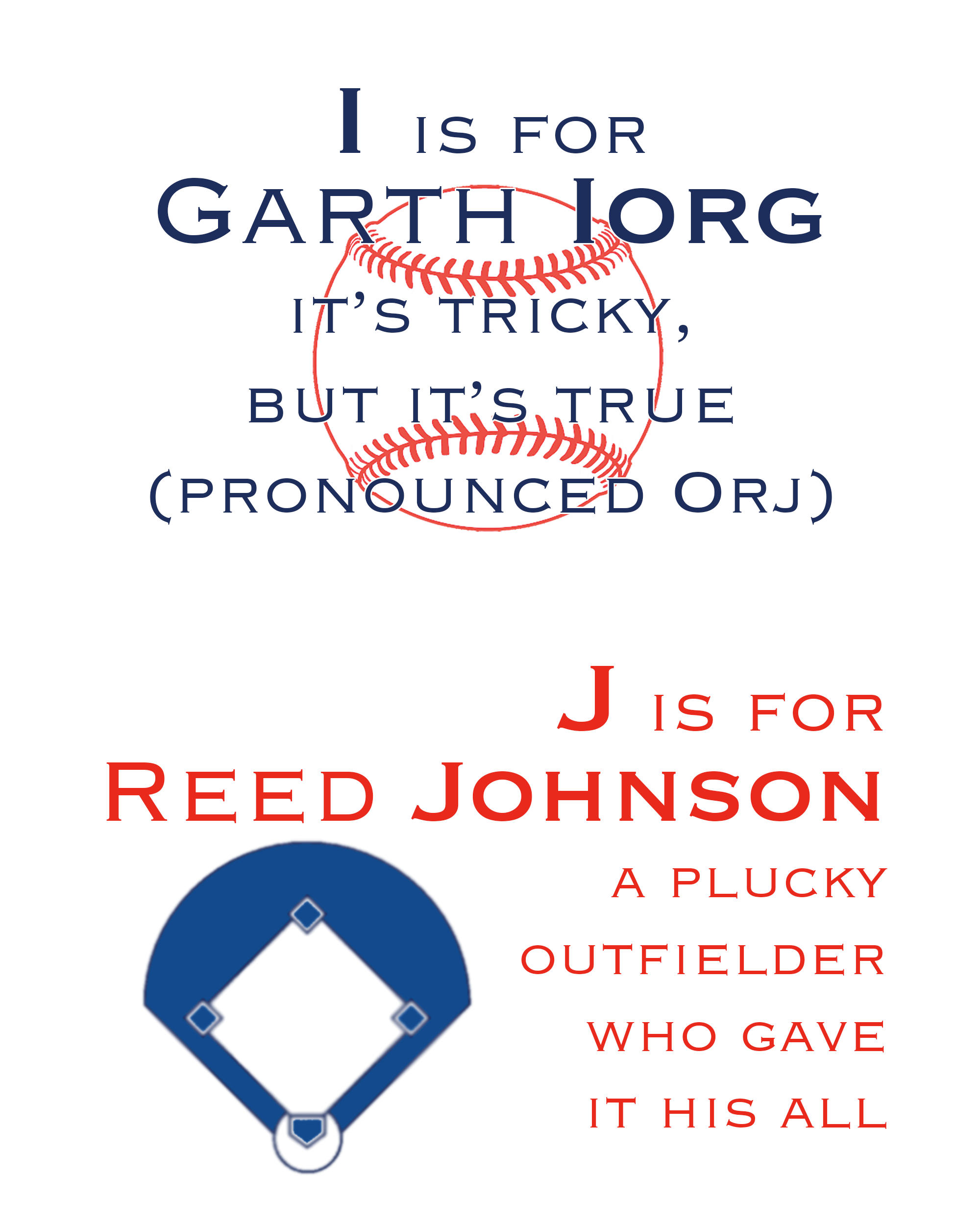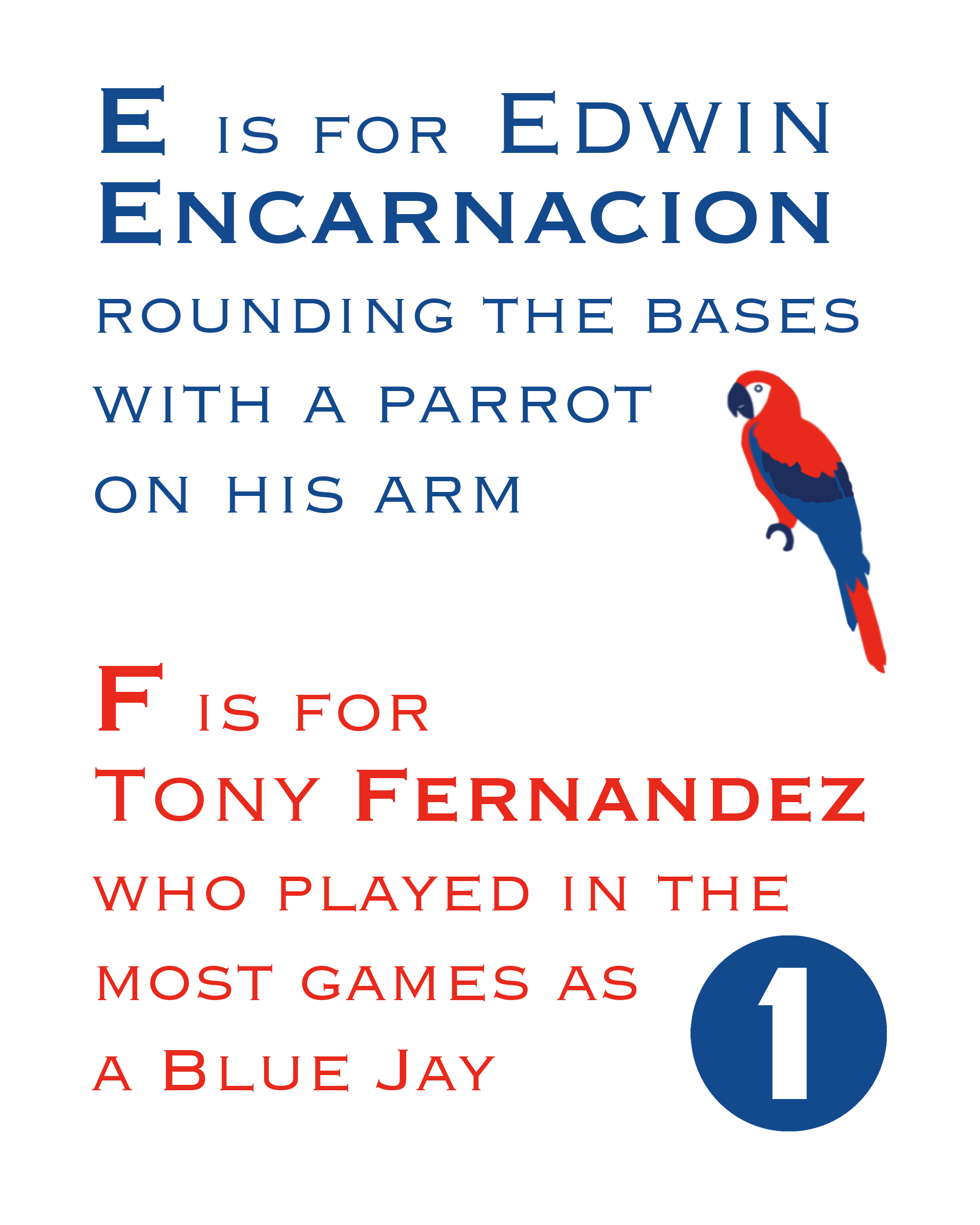 Ollie’s two years old right now, so we’ve still got some time before we ship him off to school – but we are doing number and letter work with little kid books around the condo. He’s got a Toronto ABCs book and a hockey ABCs book, a DC Comics ABCs book and more. But what he doesn’t have is a Toronto Blue Jays ABCs book.