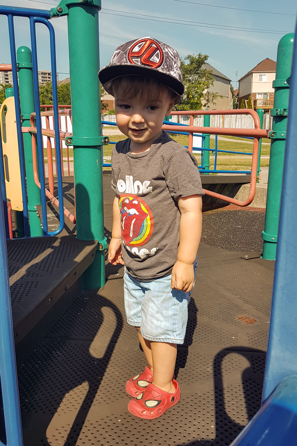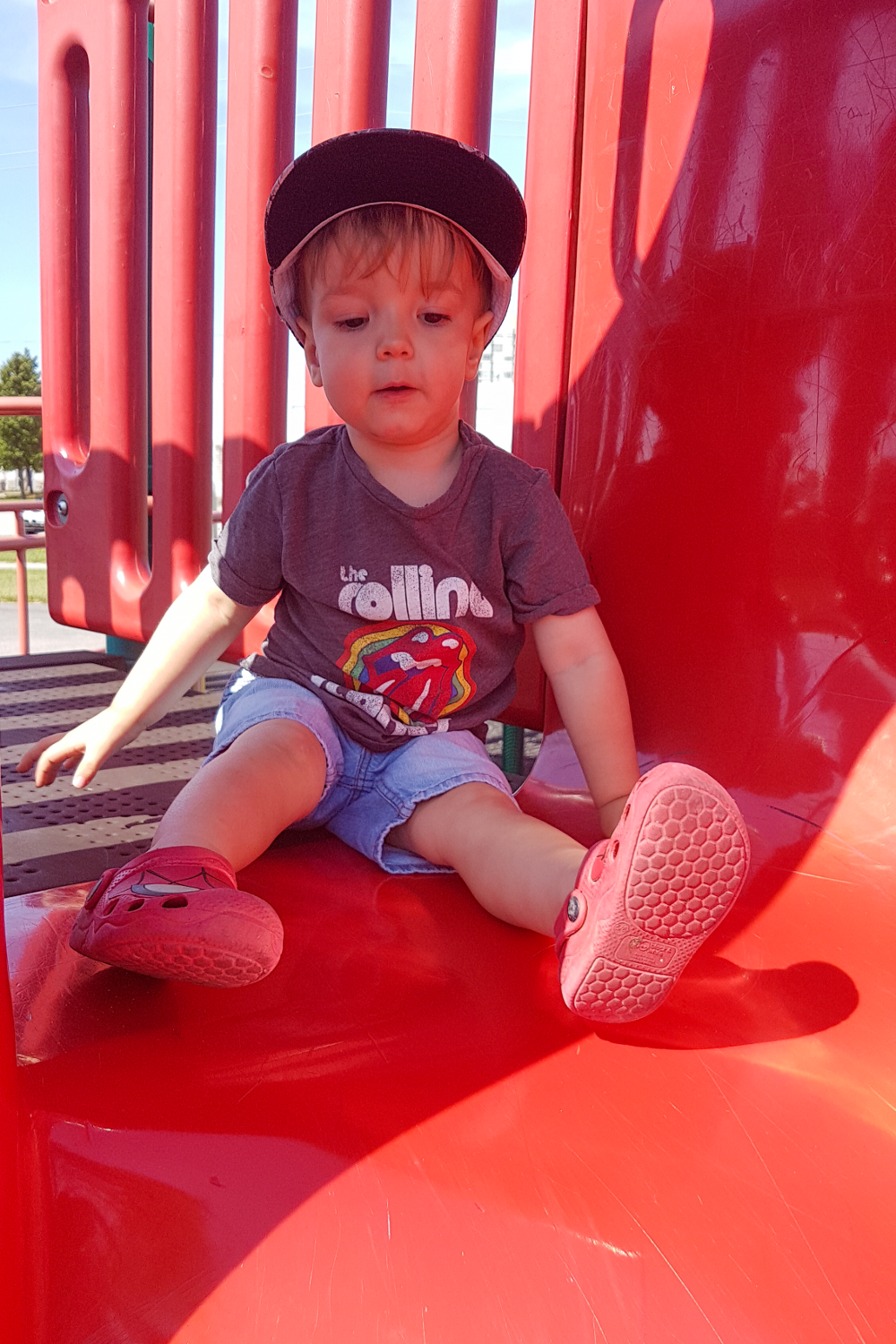 But, when he decided to cross the bridge and that he didn’t need my hand, he walked back and forth across it with confidence. When he figured out how to climb up to the twisty red slide, he went up and then down and then up again. And then when he trusted me enough to try the slides he was all-in and “weeeeeee” and claps when he hit the bottom.