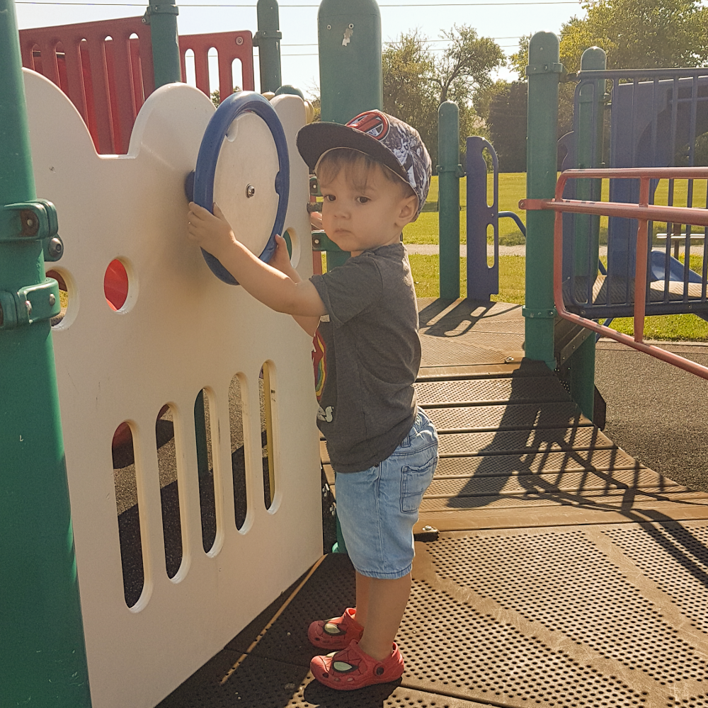It was a little awkward at first with the playtime. For what feels like forever we’ve been avoiding the equipment or telling him that it’s closed and that he can’t play on it. So today, when I told him that he could it took a second for him to get into it. But then he was ready.