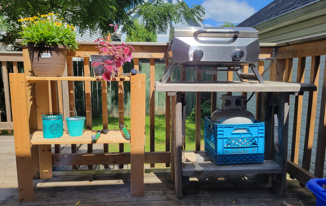We have a little BBQ (thanks mom) that we use to cook dinner as often as possible.