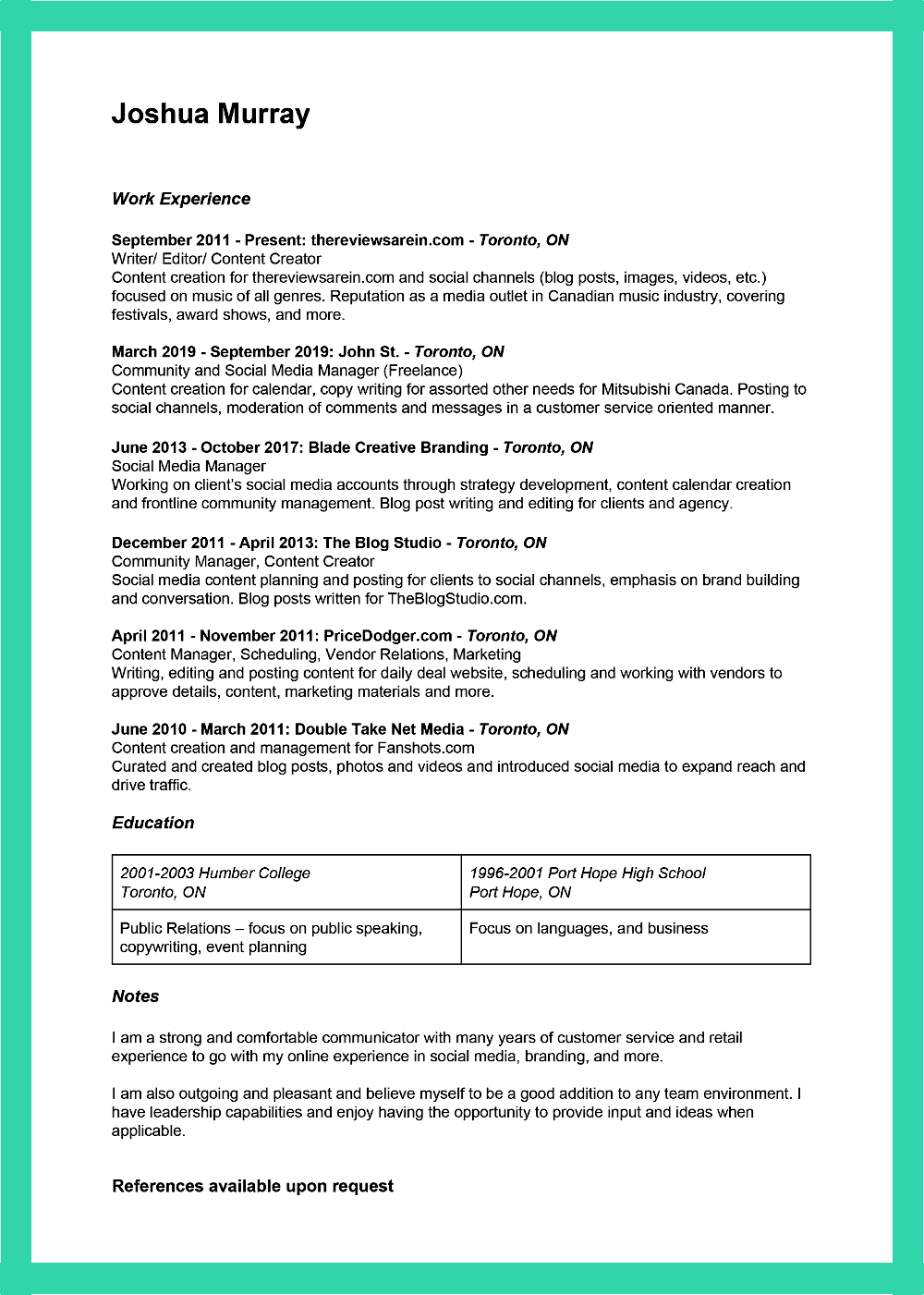 For more work history, click here to view my portfolio of writing samples.